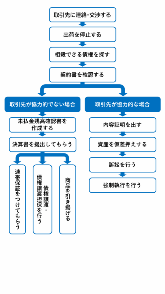 まずは証拠を確保し、内容証明郵便で正式な督促を行うことから始めましょう。それでも解決しない場合は、法的手段を検討することになりますが、その前に必ず弁護士などの専門家に相談し、回収の可能性や費用対効果を慎重に見極めることが重要です。